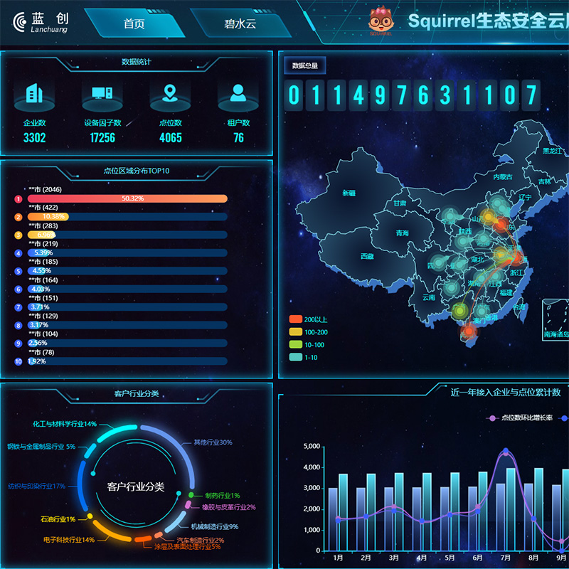 餐飲油煙在線監(jiān)控、柴油車OBD遠程在線監(jiān)控、企業(yè)安全生產信息化等系統(tǒng)于一體,通過AI數據模型對海量生態(tài)安全數據進行挖掘,為生態(tài)環(huán)境監(jiān)管部門、應急管理部門、